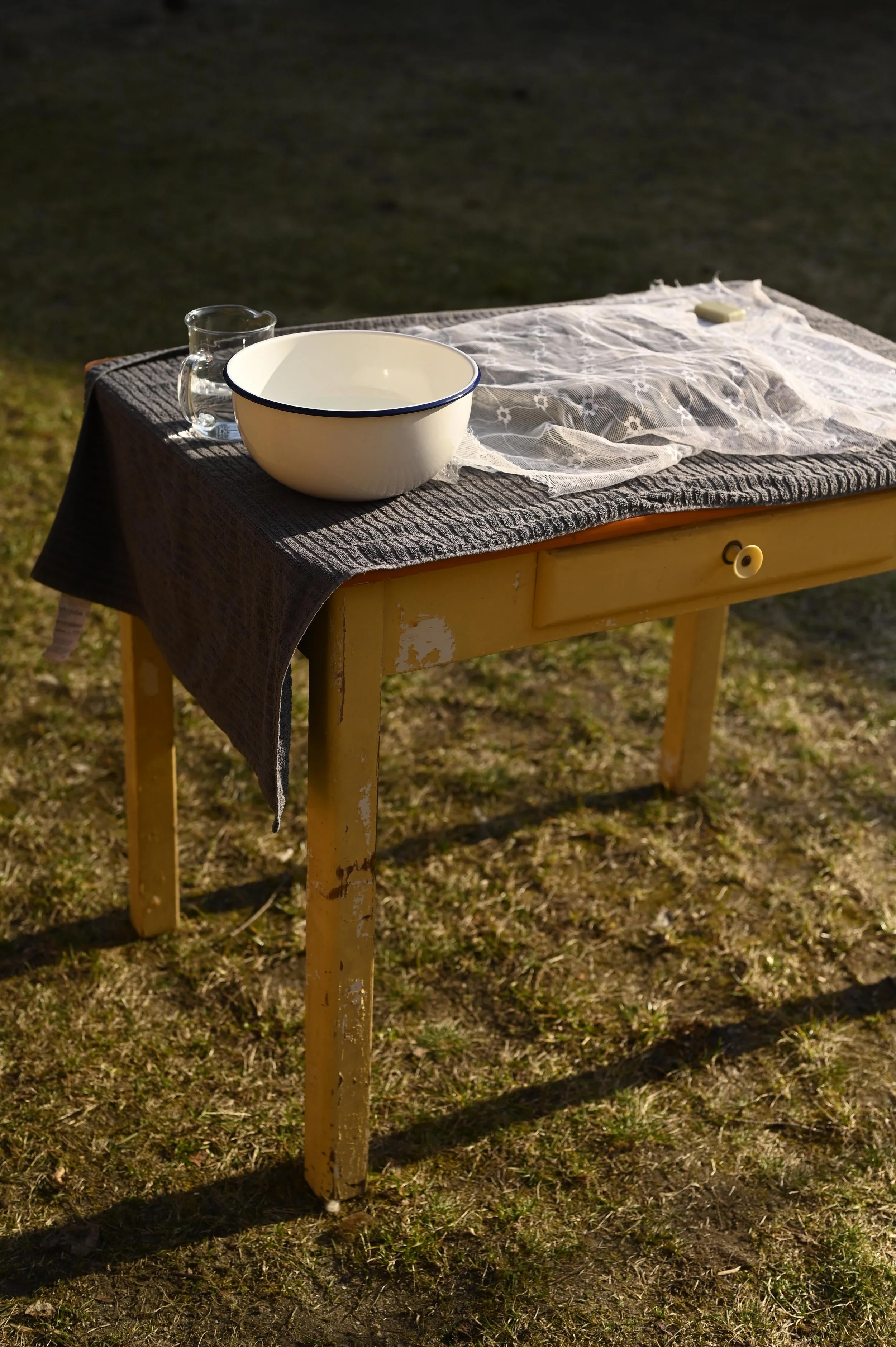 Auf den schottischen Hebriden habe ich gelernt, Schafe zu scheren, ihre Wolle zu waschen, zu kardieren, zu verspinnen und zu filzen. Heute stelle ich in meinem Atelier in Brandenburg Wandarbeiten aus roher Schafswolle her und nutze dafür uralte Techniken, Wasser und Seife.